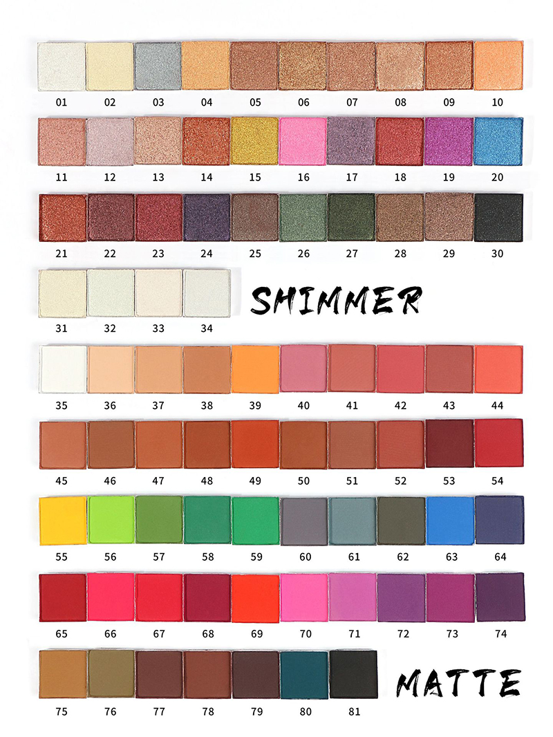 81 خيارًا للألوان متاحًا لـ Eye Shadow