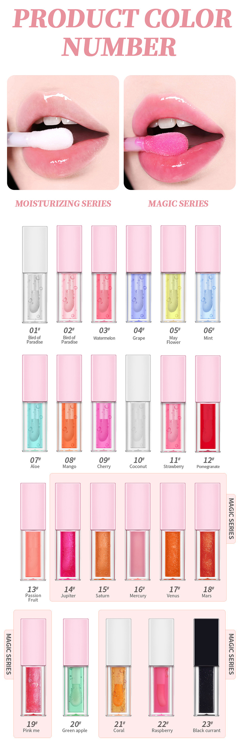 يدعم زيت الشفاه هذا الشعارات المخصصة والإنتاج بكميات صغيرة، مما يجعله مثاليًا للتطوير الشخصي من قبل العلامات التجارية للجمال، والإنتاج التجريبي من قبل الشركات الناشئة، والهدايا الخاصة. مع 23 لونًا من الفاكهة والتوت تم اختيارها بعناية وواقعية للغاية، يمكن تخصيص الزجاجة والتغليف بشعارك الخاص، مما يضمن محاذاة العلامة التجارية بشكل متسق من التصميم إلى الإنتاج. يؤدي الإنتاج المرن للطلبات الصغيرة إلى التخلص من الحاجة إلى أحمال مخزون كبيرة، مما يقلل من تكاليف الإنتاج التجريبي للعلامات التجارية وتكاليف التخزين للتجار. سواء كانت العلامات التجارية تطلق خطًا من زيوت الشفاه ذات الطابع الفاكهي، أو كان التجار يبحثون عن منتجات مكياج الشفاه المغذية والفعالة من حيث التكلفة، أو يقومون بتخصيصها كهدايا للعطلات (مثل مهرجان Qixi وعيد الميلاد) أو بالتعاون مع متاجر المشروبات، فإن هذا المنتج يوفر مرونة التخصيص وراحة المستخدم وجاذبية اللون، مما يلبي طلب المستهلكين على مظهر مكياج الشفاه "المغذي بشكل طبيعي والشخصي".