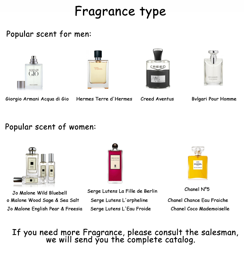 تخصيص العطر: تتوفر إمكانية تخصيص العطر، مما يسمح للعملاء باختيار أو مزج رائحتهم المثالية بناءً على تفضيلات الجمهور المستهدف وأسلوب العلامة التجارية. غالبًا ما يوظف المصنعون صانعي عطور محترفين أو لديهم مكتبات واسعة من تركيبات العطور، بما في ذلك الحمضيات الطازجة والأخشاب الهادئة والنوتات الشرقية الدافئة. ويمكنهم أيضًا تكرار الرائحة بناءً على عينة محددة.